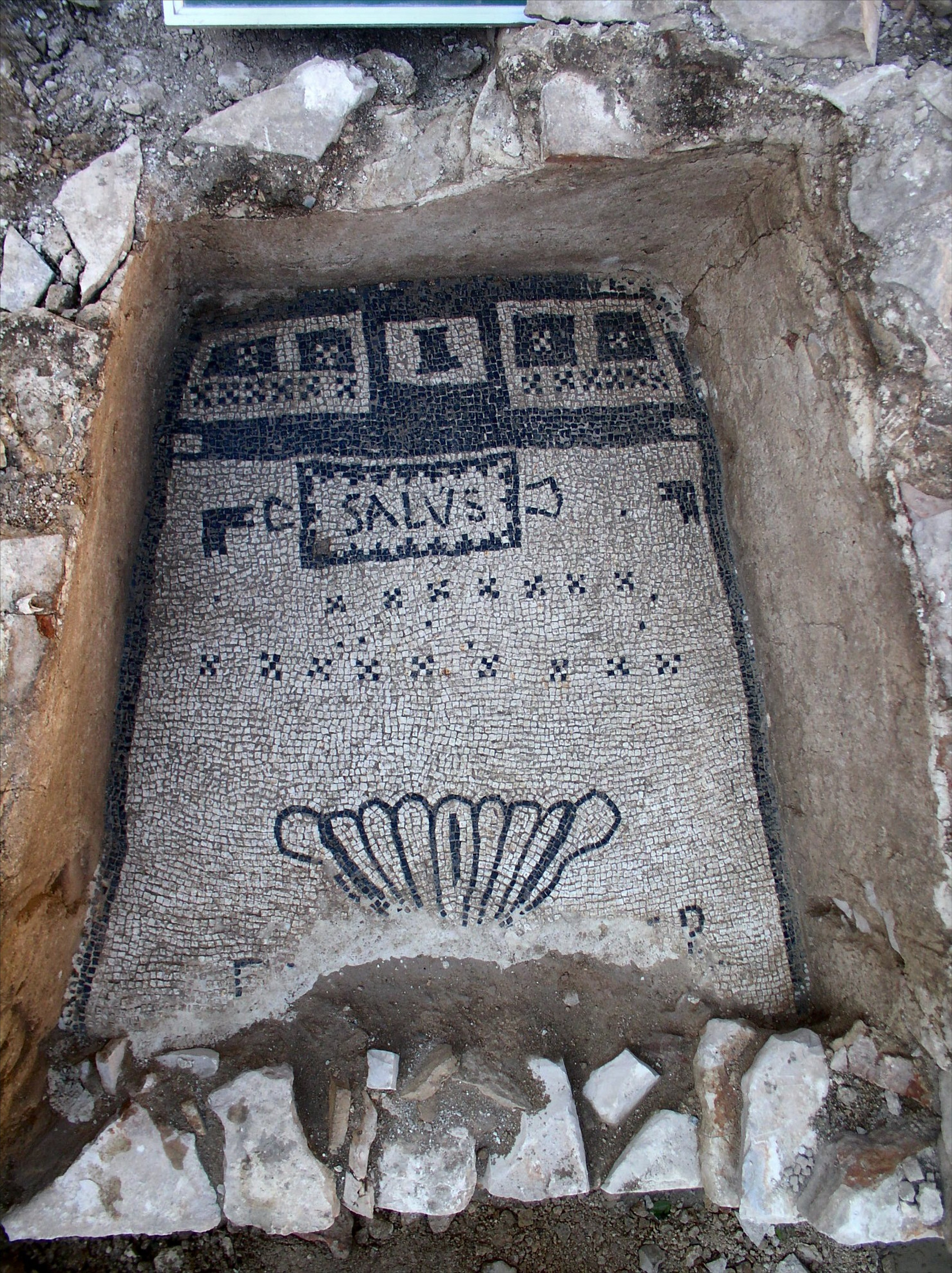 - Fig 8 Mosaic threshold depicting a cantharus and vines
