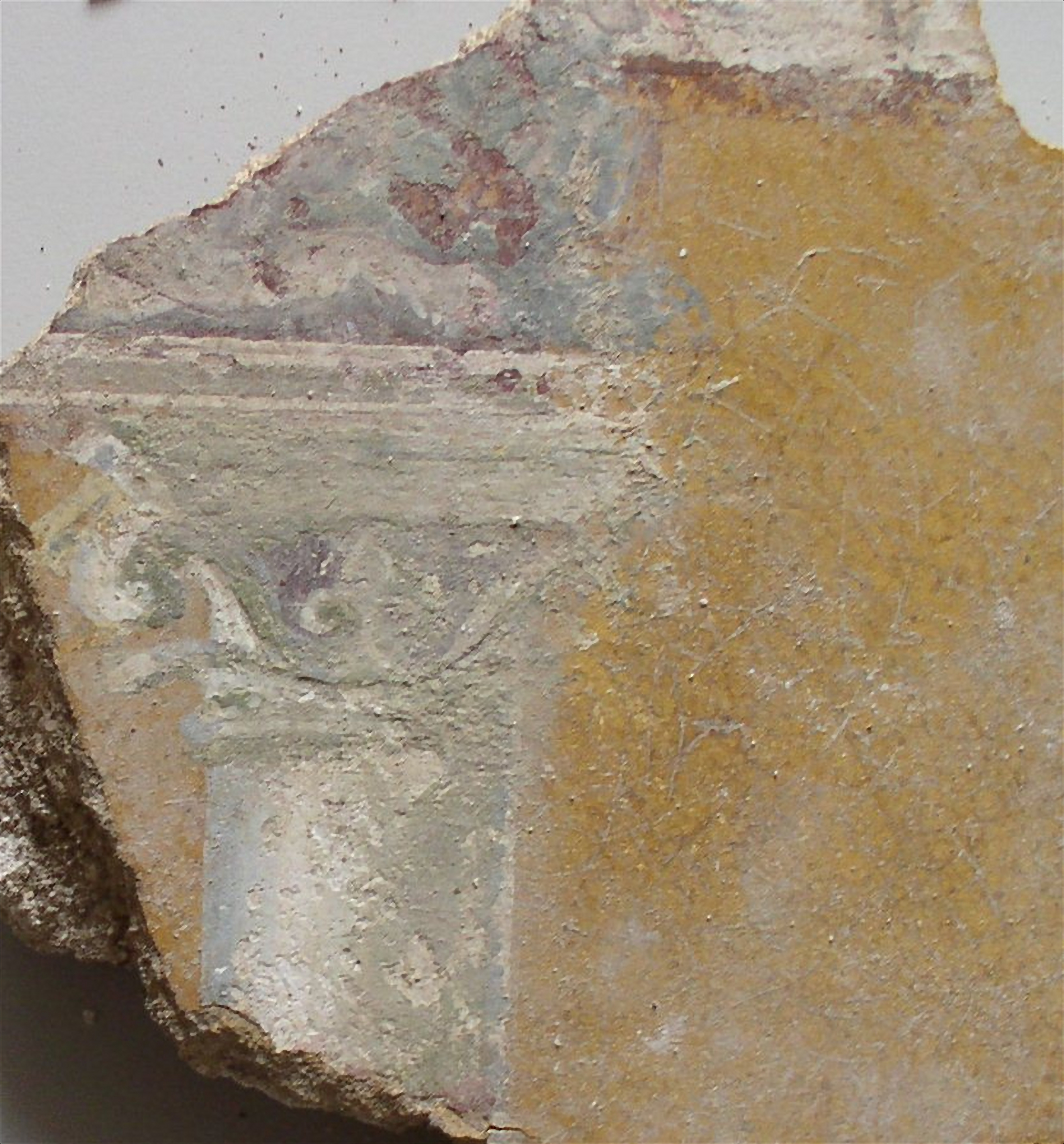 - Fig 9 Fresco fragment depicting a temple