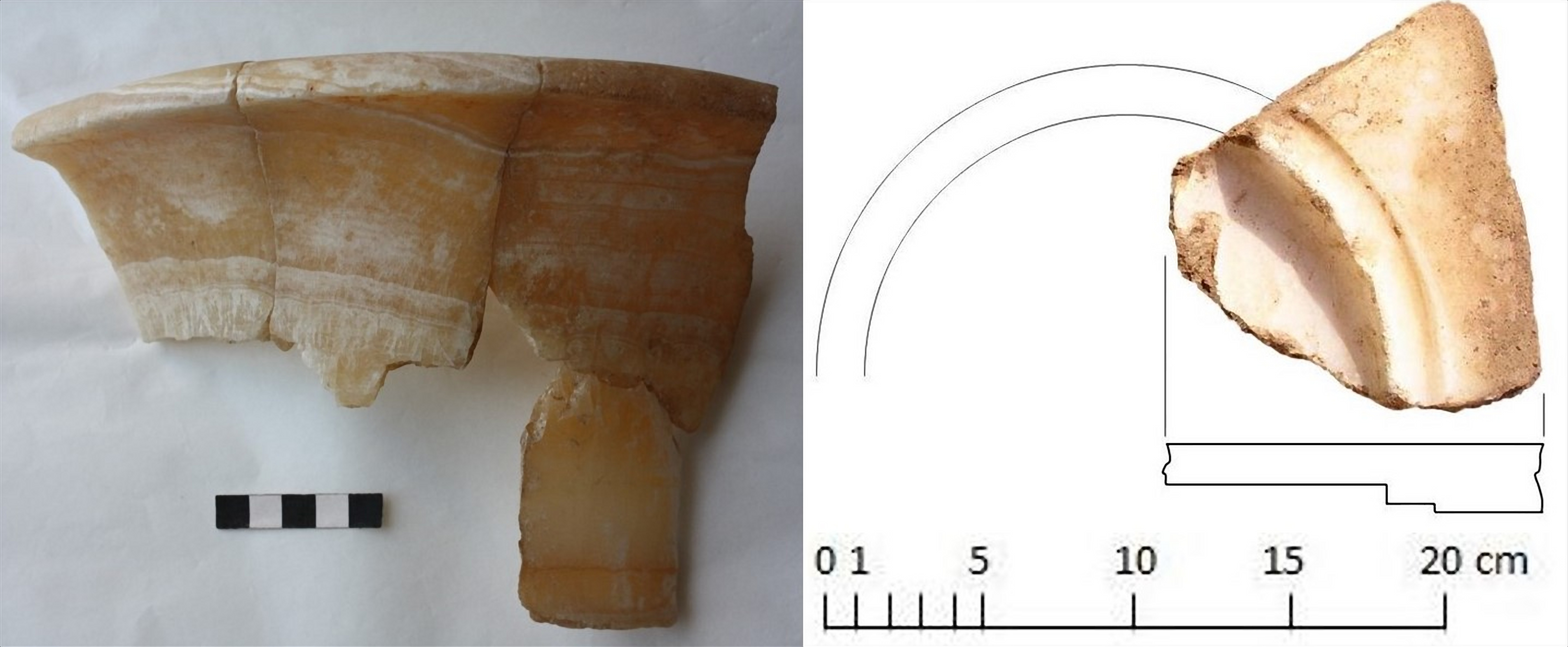 - Fig 13 Alabaster crater inv.no. AMI-A-42291 and alabaster stand fragments